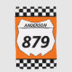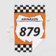 Tailgate in style at your next motocross race with this personalised towel. This towel has a white number plate graphic that's ready to be personalised with your name and bike number. The number plate is set against an orange background with a black and white chequered flag border.