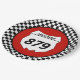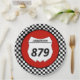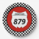 Tailgate in style at your next motocross race with personalised plates. These plates have a white number plate that's ready to be personalised with your name and bike number. The number plate is set against a red background with a black and white chequered flag border.