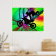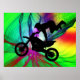 The sports action and energy of motocross athletes are captured in silhouettes of action figures demonstrating extreme tricks and stunts on their motorcycles. Digital paintings and illustrations of these teens and young men include backgrounds of bright, vivid colors and splashes and bursts of light to highlight the action. They also show off in grungy and edgy off road scenes where competitors earn their street creds showing off their motocross skills.