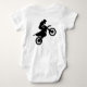 Baby boy outfit with a motocross design that combines style, comfort, and adventurous spirit. Made from soft and breathable cotton, it's perfect for baby's skin all day long. The minimalist illustration of a motorcyclist in mid-jump conveys energy, freedom, and passion for motorcycles, ideal for families with an off-road spirit.