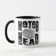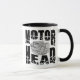 Motor head in broken text around an engine is a humourous gift design for auto mechanics, machinists and vo-tech students.
