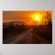 Motorbike ride in a countryside road in a sunset. Laos. Photo poster print.