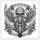 This striking artwork depicts a custom motorcycle adorned with a prominent skull, symbolising fearlessness and adventure. Flanked by majestic wings, the design conveys a sense of freedom and rebellion. A banner above the motorcycle showcases bold phrases that emphasize a carefree lifestyle, encouraging riders to embrace spontaneity without the confines of plans or rules. The detailed elements create a powerful visual statement of the motorcycle culture.