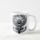Motorcycle Design Featuring Wings and Slogans Coffee Mug