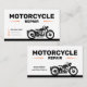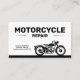 A professional business card design for a motorcycle repair shop with orange accent elements and featuring a silhouette of a vintage motorcycle. It could also be used for motorcycle-related services (sales, shop, repair, motorcycle school, etc).