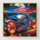 Motorcycle ride under the moon with American flag Square Wall Clock