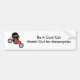 An adorable brown cat riding a red motorcycle is into motorcyle safety! He even wears his helmet! The text says, "Be a cool cat. Watch out for motorcycles." You can personalise the bumper sticker and change not only what the text says, but the look and the colour!