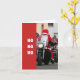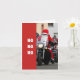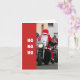 Santa Claus biker on a motorcycle in full Santa suit photo with Ho Ho Ho text to the side on red. Inside text says "Merry Christmas" but can be edited if you like.