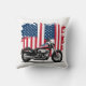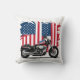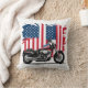 A striking motorcycle adorned with the American flag, positioned confidently against a vibrant and artistic representation of the flag’s iconic stripes and stars.