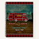 This custom notebook design with a rustic look is perfect for your home-away-from-home on wheels. It shows a red plaid motor home | camper. The RV travels over a background that had a wood grain look with mountains and pine trees. The original text says, "Roam Sweet Roam." Use the easy template to personalise the rest of the text with your own words, such as your family name. The back has your monogram letter.