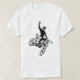 Pen & ink drawing of a motocross rider mid-jump, in bronco-buster clothes & pose. B/W, t-shirts, sweats, cards, prints, gifts.