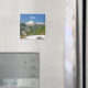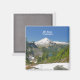 The snow-covered peak of Mt. Baker rises into the clear blue sky. It's a sunny day in the Pacific Northwest. Below the mountain, evergreen trees stand tall before a small alpine lake with beautiful turquoise colour. Mount Baker, also known as Koma Kulshan or Kulshan, is a prominent volcano in Washington state's North Cascades. Bring this scenic view of the Cascade Mountains to your home with this magnet. You can customise the text to give the magnet your own message. This landscape photo is also available on round magnets in three sizes. Enjoy choosing your favourite way to enjoy this magnificent scenery.