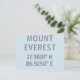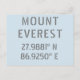 Postcard features latitude and longitude for Mount Everest, Nepal in grey, modern stencil font on light blue grey background