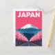 Celebrate the beauty of Japan with this stunning retro travel postcard. The vibrant pink design features the snow-capped Mount Fuji towering over an iconic avenue lined with blooming Cherry Blossom trees. This artwork captures the classic elegance and powerful natural scenery of Japan in a striking, high-contrast, vintage style. It is the perfect souvenir or art piece for anyone who loves Japanese culture, landscapes, or bold graphic design.