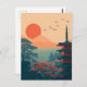 This artwork showcases a tranquil Japanese pagoda set within a peaceful forest, illustrated in a vintage-inspired style. The scene blends traditional architecture with natural beauty, creating a calm and nostalgic atmosphere. Ideal for Japan lovers, vintage art fans, and anyone drawn to serene Asian landscapes.