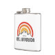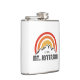 The flask itself is fine. It’s a cheap flask, obviously bought in bulk, however am prepared to overlook that. Given that it is a personalized item, I would have liked to have seen gift boxing instead of the generic packaging. Terrible printing, and/or quality. It’s a cheap, tacky vinyl. It is not cut straight and is also applied in a way that it is overhanging the bottom, causing the glue to catch on items and it will eventually roll and tear, damaging the wrap.