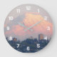 Decorate a living space with this stylish wall clock with white numerals and features the scenic photo image of a glowing, pink alpenglow on Mount Rainier watching over the city of Tacoma, Washington. Select your clock style and size along with hand colour. Use to decorate a living room, dining room, kitchen, bedroom, or any other room.