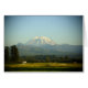 Mount Rainier towers over a picturesque farm with farmhouse and cattle near Enumclaw, Washington.