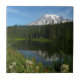 Mount Rainier Lake Reflection with Wildflowers Ceramic Tile