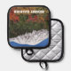 Safely handle baking trays, cookie sheets and casseroles from the oven with this pot holder with black trim that features a scenic, photographic image of snow capped Mount Rainier and autumn colour in the great Pacific Northwest state of Washington. Makes a great travel souvenir gift! Select your pot holder backing style.