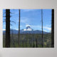 A beautiful sunny day in late September, 2017. View of Mount Washington framed by trees & beautiful blue sky. Snow covering the top & below are what remained of a recent forest fire, but there is already green growing back!