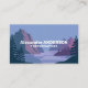 A business card for photographer, artistic activities or contact with nature. It is accompanied by an illustration of a picturesque landscape with mountains, trees and a lake in a soft gradient of blue and purple tones.