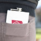 The flask itself is fine. It’s a cheap flask, obviously bought in bulk, however am prepared to overlook that. Given that it is a personalized item, I would have liked to have seen gift boxing instead of the generic packaging. Terrible printing, and/or quality. It’s a cheap, tacky vinyl. It is not cut straight and is also applied in a way that it is overhanging the bottom, causing the glue to catch on items and it will eventually roll and tear, damaging the wrap.