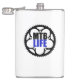The flask itself is fine. It’s a cheap flask, obviously bought in bulk, however am prepared to overlook that. Given that it is a personalized item, I would have liked to have seen gift boxing instead of the generic packaging. Terrible printing, and/or quality. It’s a cheap, tacky vinyl. It is not cut straight and is also applied in a way that it is overhanging the bottom, causing the glue to catch on items and it will eventually roll and tear, damaging the wrap.