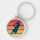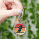Mountain Biking on Retro Sunset Stripe keychain