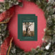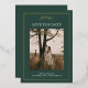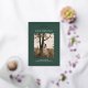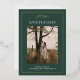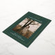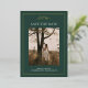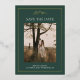 Save the date card with one photo, a double line frame and an outline mountain drawing in foil.