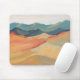 This computer mouse pad features an distant mountain range, in a warm, colorful palette.