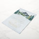 Design features an elegant watercolor mountain view scenery with a modern style text layout. The text is in real gold foil. You can pick from several foil colours. The back features a demo couple photo. Change to your very own photo. View alternative versions of this invitation and matching suite items within the collection link found on this page.