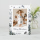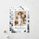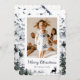 Beautiful watercolor photo Merry Christmas card featuring a winter scene with mountain tops, winter forests and a deer. Easily personalise this holiday card with your photo, family name and text.