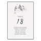 Designed to coordinate with our "Mountain Forest Wedding" collection, these rustic wedding table numbers are perfect for any simple and elegant wedding reception. These seating chart cards feature a hand-drawn sketch of a mountain forest view in black and white and are easily customisable with your guests' names by editing the template fields.