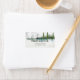Mountain, forest, lake and string lights. Beautifully save the date that can be customised with your name. Select the "customise" button to change the font style, colour and size.