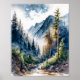 Mountain Forest Landscape Watercolor Poster