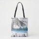 Mountain Lake City Skyline | Monochrome Scenery Tote Bag