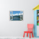 Beautiful mountain lake view, faux window scene, for a windowless office. Very realistic landscape optical illusion poster that would look great on an office or study wall.