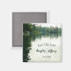 A tranquil riverside scene is the backdrop for this rustic wedding save the date magnet - a small island can be seen reflected in calm but lightly rippled water under an overcast sky as well as distant evergreens and rock structures | part of the Mountain Lake Rustic Wedding Collection by katz_d_zynes >> https://www.zazzle.com/collections/119499271518309609