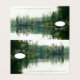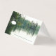 This Mountain Lake wedding guest place card, created from my own personal photograph and with a subtle digital watercolor effect, features a beautiful rustic scene under an overcast sky with lightly rippled but calm water reflecting distant evergreens and rock structures, perfect for a mountain, lakeside, or riverside wedding celebration | part of the Mountain Lake Rustic Wedding Collection by katz_d_zynes >> https://www.zazzle.com/collections/119499271518309609