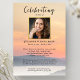 Honour your loved one with this beautiful celebration of life invitation. The front features a sunset water scene, your photo framed by a faux gold border and details of your celebration. (Easily change the background photo to one of your own.) The backside offers space for another photo and poem or scripture (or delete). The template is very easy to use and change - create an invitation that’s unique, classic and will be cherished forever.