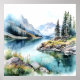 Mountain Lake Watercolor Painting Art Print.