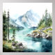 Mountain Lake Watercolor Painting Art Print