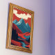 Mountain Landscape Red Blue Retro Illustration Wall Art Poster for Print.