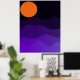This modern digital art features a colourful illustration of a retro evening mountain landscape in all shades of purple.