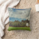 Throw pillow featuring a vintage style photo of mountain landscape. Majestic white clouds, blue mountains peaks, astronomical observatory, forest and green meadow. Stylish gift for outdoor enthusiasts, dreamers and adventures seekers. This Trow pillow will especially work well with the country, rustic and eco-style of décor.