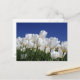 Mountain of white tulips against a blue sky postcard