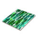 Ceramic tile in a watercolor pattern of pine trees in a mountain forest, in shades of medium to dark pine green on a soft, watercolor background