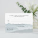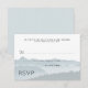 Mountain ridge wedding rsvp enclosure cards with custom text. Include a line to ask guests for an exact count, if you wish, or remove it and word it as you like. Blue grey and white, with misty mountains background image.