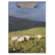 A photographic design of Welsh mountain sheep grazing on the sunny hillside just as the rain is about to start.